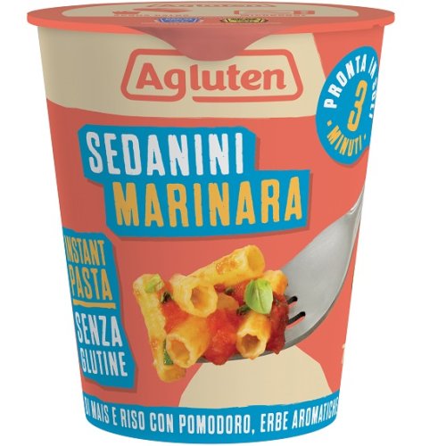 Pasta 71,4% (farina di mais 50%, farina di riso 21%; emulsionante: mono- e digliceridi degli acidi grassi), condimento disidratato 28,6% (pomodoro 10%, fecola di patate, maltodestrina, aglio 3,4%, sale, erbe aromatiche 0,6%; antiagglomerante: carbonato di magnesio; estratto di lievito, aromi naturali, spezie 0,06%).