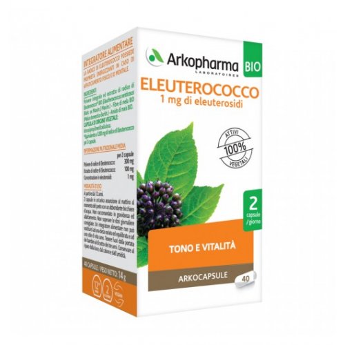 Integratore alimentare a base di eleuterococco. La radice di eleuterococco possiede proprietà energizzanti in caso di affaticamento fisico e/o mentale.