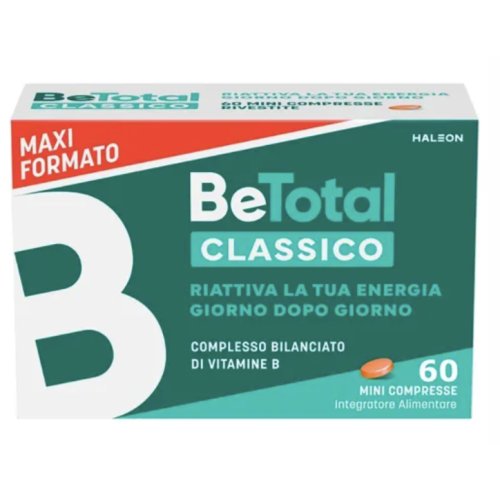 Una compressa di Be-Total apporta vitamina B1 in forma di mononitrato di tiamina. Una compressa apporta vitamina B2 in forma di riboflavina. Una compressa apporta vitamina B6 in forma di piridossina cloridrato. Una compressa apporta vitamina B12 in forma di cianocobalamina. Una compressa apporta niacina in forma di nicotinamide. Una compressa apporta acido pantotenico in forma di calcio D-pantotenato. Una compressa apporta acido folico in forma di acido pteroil-monoglutammico. Nel paragrafo successivo sono riportate le modalità di conservazione del prodotto.