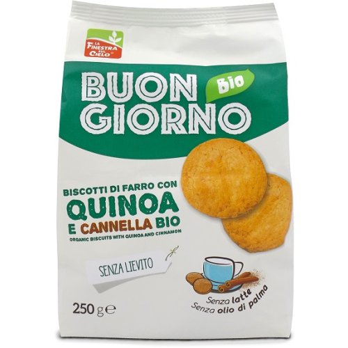 Farina di farro (47%), sciroppo di riso, olio di mais (13%), amido di mais, farina di quinoa (5%), succo di mela concentrato, burro di cacao, sale marino, aromi naturali, emulsionante: lecitina di girasole, cannella (0,1%).