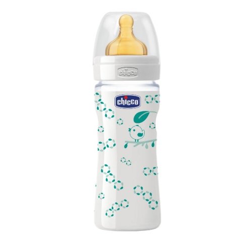 Biberon realizzato in vetro, materiale che non contiene BPA.