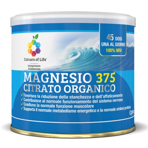 Integratore alimentare con edulcorante in polvere ad alta solubilità a base di magnesio citrato, che garantisce l'assunzione di 375 mg di magnesio, pari al 100% del Valore Nutritivo di Riferimento giornaliero.