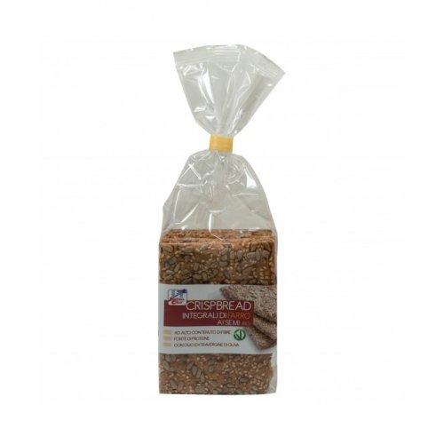 Crispbread integrali al farro con semi biologici ricco di fibre e con olio extravergine di oliva fonte di proteine.