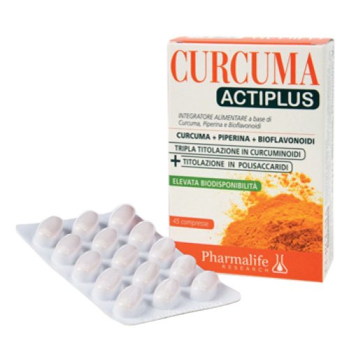 DescrizioneIntegratore alimentare a base di un estratto granulare di curcuma a tripla titolazione in curcuminoidi (curcumina, dimetossicurcumina e bis-dimetossicurcumina) e titolato anche in polisaccaridi, reso altamente biodisponibile dalla presenza della piperina, del flavonoide quercetina e dell’esclusivo complesso micellare emulsionante Acacel.