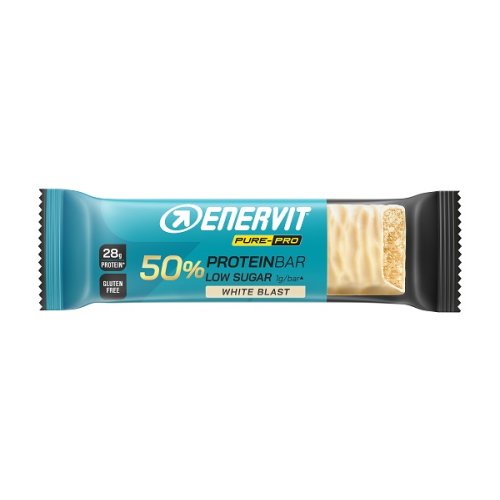 Barretta proteica ricoperta di cioccolato bianco con edulcorante. Apporta circa 28 g di proteine che contribuiscono alla crescita e al mantenimento della massa muscolare.