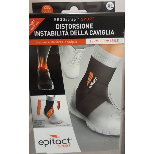 ERGOstrapTM SPORT sostiene e stabilizza la caviglia senza ostacolare il movimento grazie all'azione combinata dei rinforzi termoformabili all'altezza del malleolo e del bendaggio elastico brevettato EPITHELIUMFLEX.