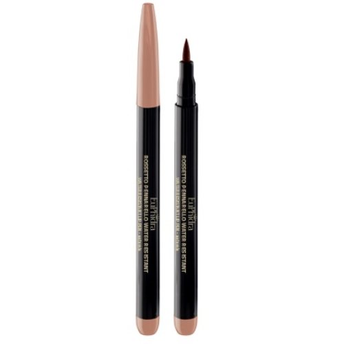 Rossetto in penna semi-permanente, 2 in 1 (contorno labbra e rossetto) con punta in fibra. L'applicatore in fibra dalla punta sottile è ideale per definire con precisione il contorno delle labbra o garantire un'applicazione piena e uniforme. Il colore a base d’acqua si fissa in modo impeccabile: è leggero, senza spessore e ad asciugatura istantanea.