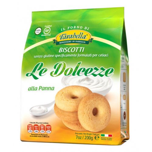 Amido di mais, zucchero, olio di girasole, farina di riso, farina di mais, farina di riso diastasata, panna (5,6%), latte intero in polvere, amido di mais pregelatinizzato, sciroppo di glucosio; agenti lievitanti: pirofosfato acido di sodio, sodio bicarbonato, ammonio bicarbonato; lecitina di soia, sale, aromi naturali.