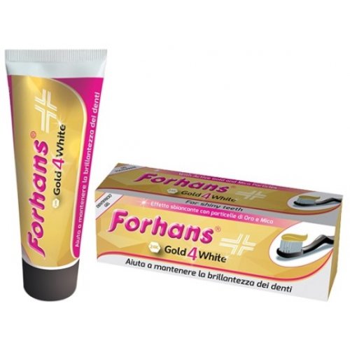 Tali particelle, unite a quelle della silice idrata, aiutano a rimuovere le impurità che si depositano sulla superficie dei denti giorno dopo giorno con la normale assunzione di cibi, di bevande quali vino rosso, tè, caffè e con l’uso delle sigarette. La rimozione sistematica della placca dentale, con l’ausilio del dentifricio gel Forhans Gold4 White, contibuisce a ridurre la carica batterica del cavo orale, aiutando quindi a prevenire possibili infiammazioni gengivali e problemi di alitosi.