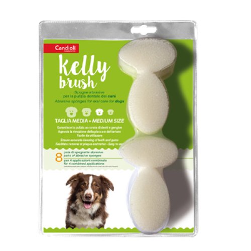 Le spugnette KELLY BRUSH possono essere più agevolmente applicate sulle dita partendo dalla metà delle unghie e rivestendo la parte interna del dito. In caso di utilizzo su gatti o su cani di piccolissima taglia è possibile applicare la spugnetta su un bastoncino di idonea dimensione.
