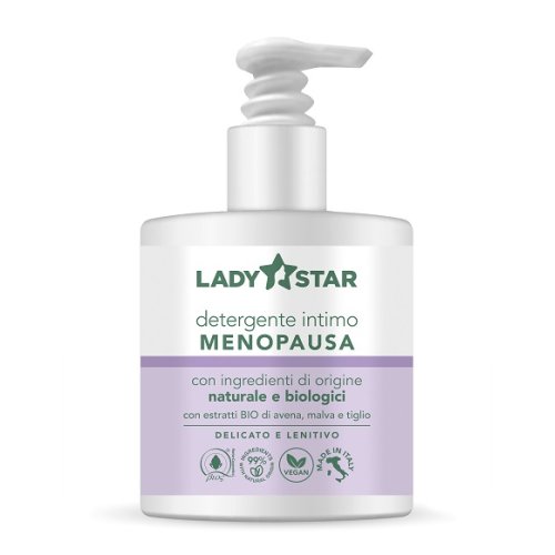 Detergente intimo lenitivo formulato appositamente per le donne in menopausa, contiene estratti di avena, malva e tiglio.