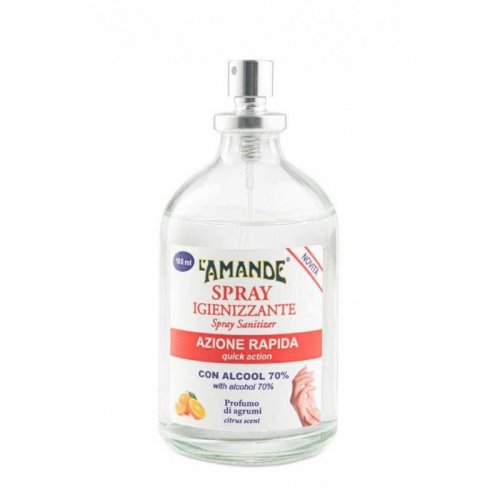 Spray igienizzante. Formulazione alcolica (alcohol 70%). Per un'azione igienizzante più profonda. Profumo di agrumi.