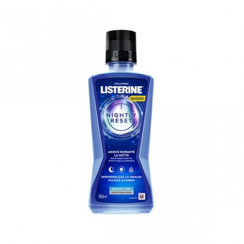 LISTERINE Nightly Reset, è un collutorio con una formula che agisce durante la notte per combattere gli effetti della giornata.