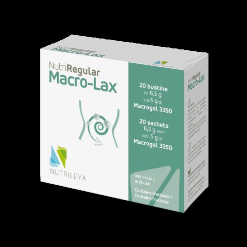 NutriRegular Macro-Lax è indicato nei casi di stipsi cronica e in caso di irregolarità intestinali. Grazie all'effetto osmotico del Macrogol 3350 determina la reidratazione e l'ammorbidimento della massa fecale, accelerando il transito intestinale, favorendo la peristalsi e facilitando l'evacuazione in modo naturale.