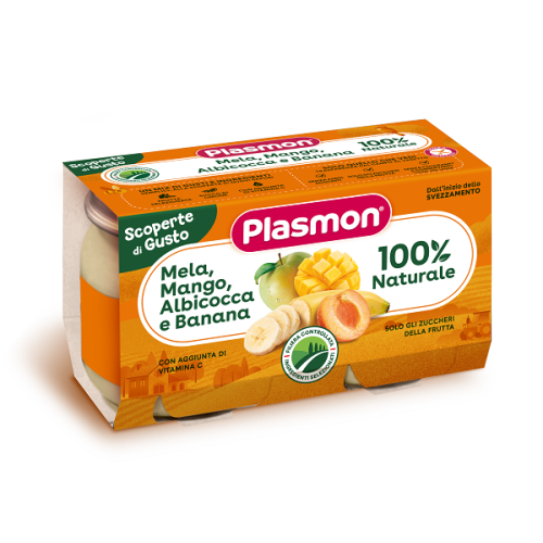 Omogeneizzato di frutta mista 100% naturale con aggiunta di vitamina C.