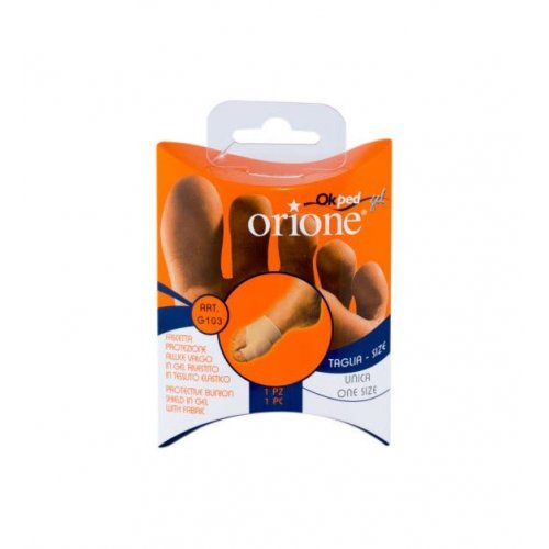 Fascetta di protezione per alluce valgo orione, in gel polimero rivestito di tessuto elastico. Le protezioni per alluce valgo aiutano ad alleviare e proteggere la protuberanza ossea. Alleviano la pressione e l'attrito esercitato dalla scarpa. Si adattano a tutte le misure del piede. Il gel polimero ha incorporato un olio minerale, che venendo in contatto con la pella la idrata, la ammorbidisce e la protegge. il gel polimero è atossico, ipoallergenico e non favorisce lo sviluppo di batteri. I prodotti in gel polimero conservano le loro caratteristiche nel tempo, sono lavabili e riutilizzabili.