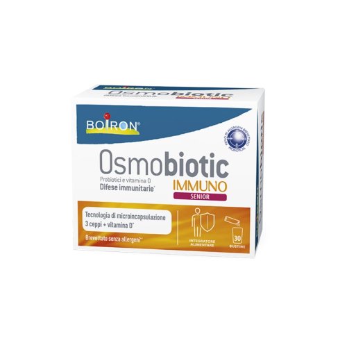 Osmobiotic immuno senior associa ceppi probiotici, rigorosamente selezionati e documentati, alla vitamina D che contribuisce al normale funzionamento del sistema immunitario.