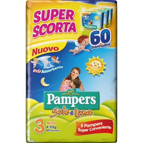 Pampers Sole e Luna Midi, 60 Pannolini, Taglia 3 (4-9 kg).