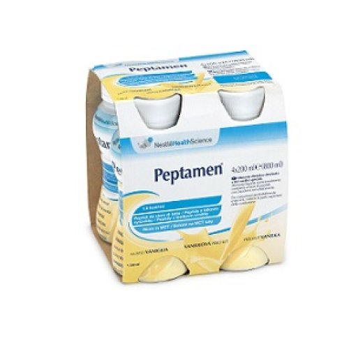 Alimento liquido nutrizionale completo a base di peptidi, con zucchero ed edulcorante.Gusto: vaniglia.