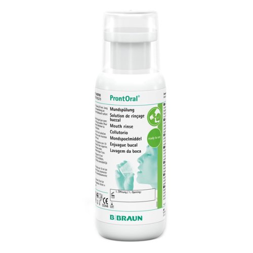 Collutorio medicale con innovativo complesso poliesanide-betaina. Il poliesanide è dotato di un'ottima azione antimicrobica. La combinazione con il tensioattivo betaina consente un'azione detergente, che permette persino di sciogliere i biofilm. Grazie alla betaina, la tensione superficiale è notevolmente ridotta. Pertanto, il poliesanide è in grado di penetrare settori inaccessibili per le soluzioni acquose. Anche le aree di mucosa sono deterse in profondità e contemporaneamente liberate dai microrganismi. Grazie alle sue proprietà ProntOral è perfettamente idoneo per l'igiene orale quotidiana. Il suo uso regolare inibisce in maniera affidabile la formazione della placca batterica. Inoltre, assicura una protezione ottimale da carie, parodontosi e gengiviti. La flora naturale di mantiene in sano equilibrio. Usato anche per la decolonizzazione dagli MRA della cavità orale e della faringe.