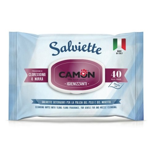 Salviette detergenti per l'animale domestico, da tenere sempre a portata di mano: a casa e in viaggio, per pulire il pelo e le zampe, togliere il cattivo odore,pulire il muso e le orecchie.