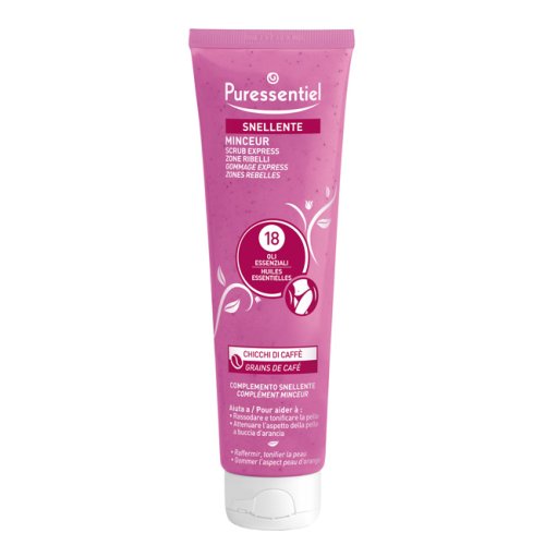 La formula al 99% di origine naturale dello Scrub Express Zone Ribelli Puressentiel arricchito con oli essenziali al 100% puri e naturali, associati ai chicchi di caffè che favoriscono l'esfoliazione, permette di esfoliare e levigare la pelle, di attenuare l'aspetto della pelle a buccia d'arancia e offre un risultato pelle nuova istantaneo.