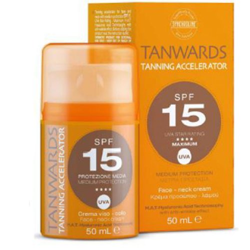 Acceleratore di abbronzatura crema viso e collo con protezione media SPF 15.