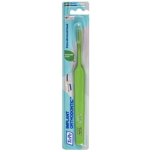 Spazzolino dai filamenti soffici disposti su due file ha una testina molto sottile e un collo lungo e affilato, che facilita l'accesso e la pulizia attorno agli impianti e ai fili ortodontici.Cod. 442300