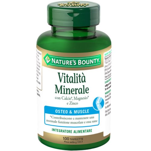 Vitalità Minerale è un integratore alimentare a base di calcio, magnesio e zinco, tre minerali di ossa e muscoli. Il calcio contribuisce al normale metabolismo energetico, alla naturale funzione muscolare ed è necessario per il mantenimento di ossa e denti sani. Il magnesio contribuisce alla riduzione di stanchezza e affaticamento, alla normale funzione muscolare e, insieme allo zinco, ha un ruolo nella divisione cellulare. Lo zinco contribuisce al normale metabolismo acido-base e al mantenimento, assieme al magnesio, di ossa sane.