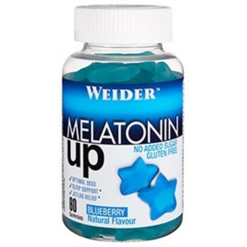 Integratore alimentare. Caramelle gommose con melatonina e vitamina B6. Con edulcoranti. Gusto Mirtillo.