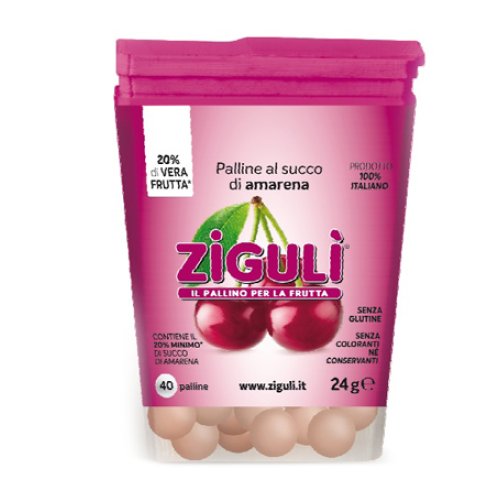 Destrosio, zucchero, succo di amarena concentrato e disidratato al 4,7% (pari al 20% di succo di amarena), sciroppo di glucosio, addensante: gomma arabica, aromi, acidificante: acido citrico; antiagglomeranti: magnesio stearato, biossido di silicio; agente di rivestimento: cera carnauba. Senza coloranti né conservanti.