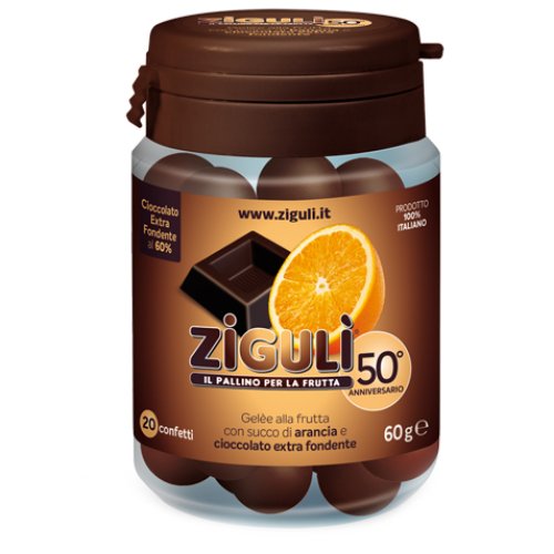 Zucchero, sciroppo di glucosio, succo di arancia 3%, gelificante: pectina; acidificante: acido citrico; cioccolato extra fondente 60% (zucchero, pasta di cacao, burro di cacao; emulsionante: lecitina di soia; aroma naturale di vaniglia) 33%; addensante: gomma arabica; amido di riso, aromi naturali; sostanze alimentari coloranti: rosso ciliegia naturale, estratto di cartamo; agente di rivestimento: cera carnauba.